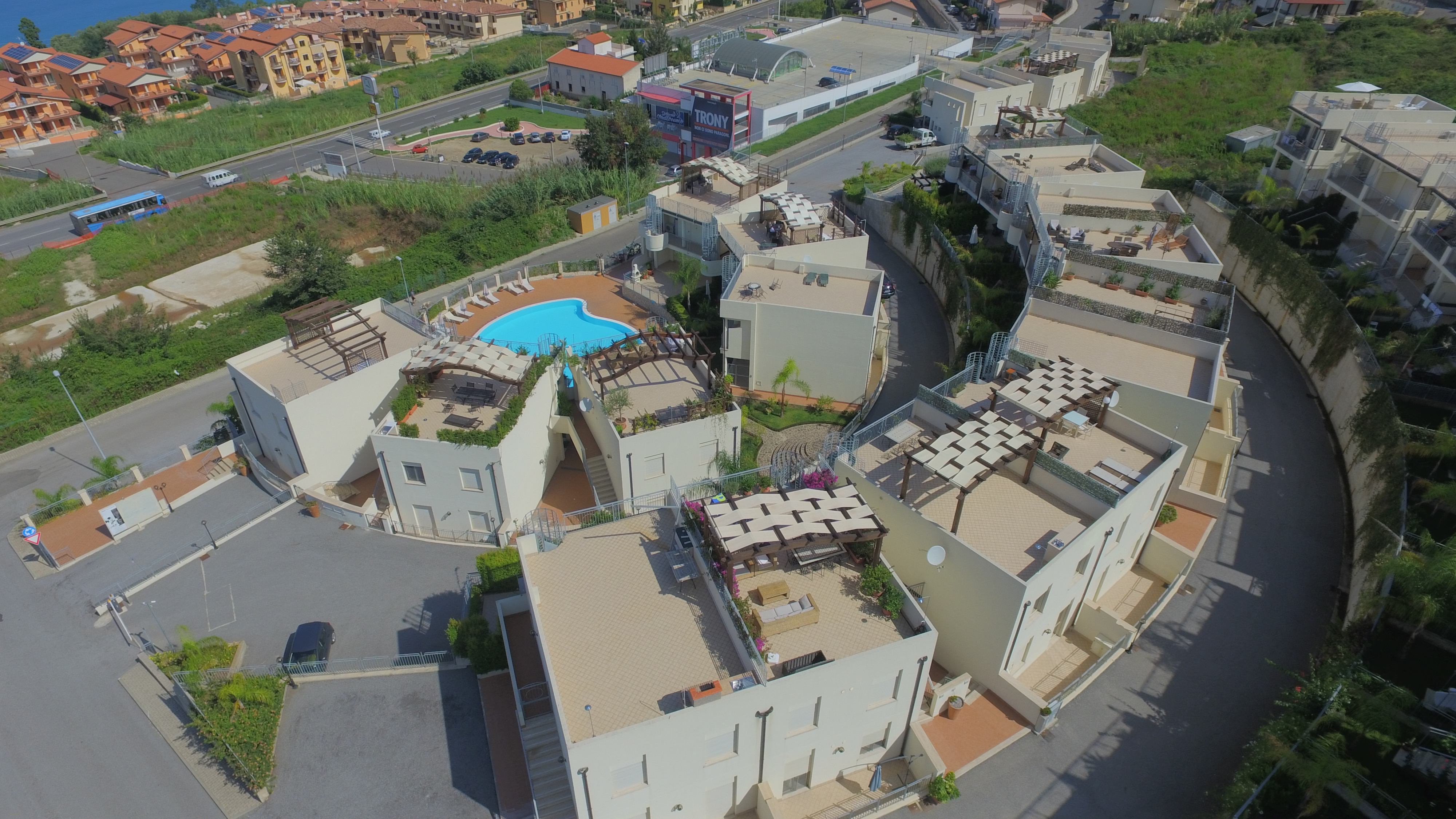 Napitia Hills is perched at the most elevated point of Pizzo providing each property with unobstructed, panoramic sea views over the town its self. A short walk (15 minutes) and you reach the central and charming parts of Pizzo (the Piazza). Close to beautiful beaches, stores, bars and restaurants.