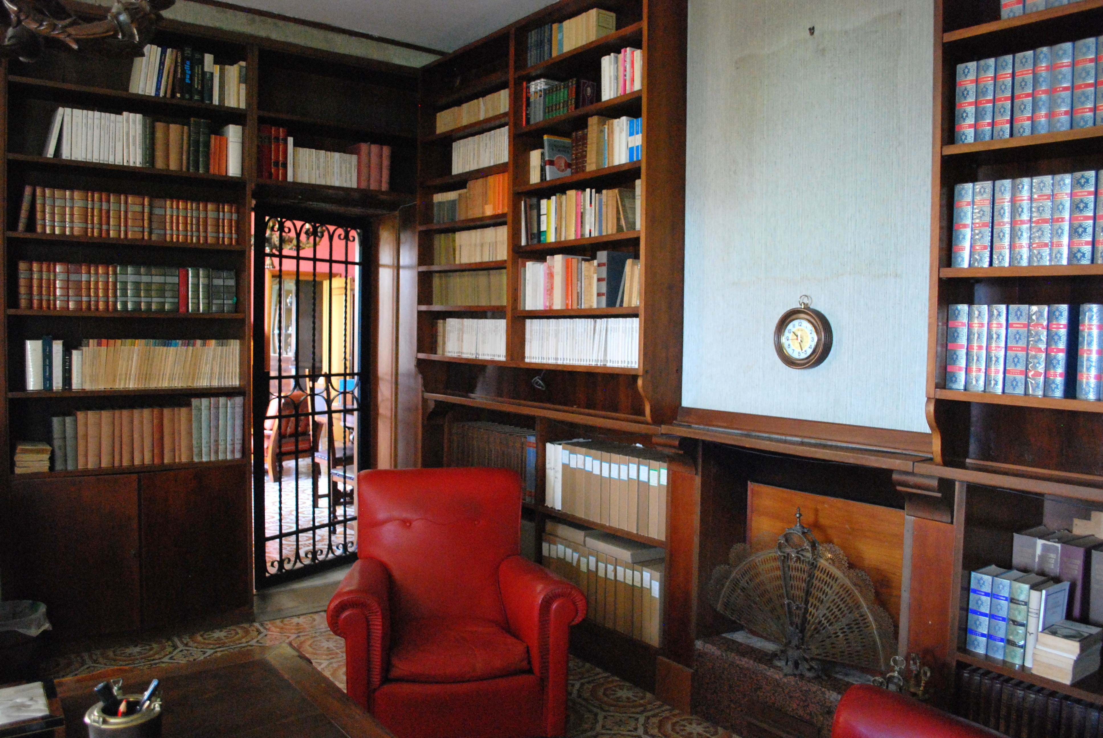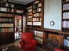 On the first floor: small living room area, kitchen, living room, study, library with fireplace, bedroom and bathroom