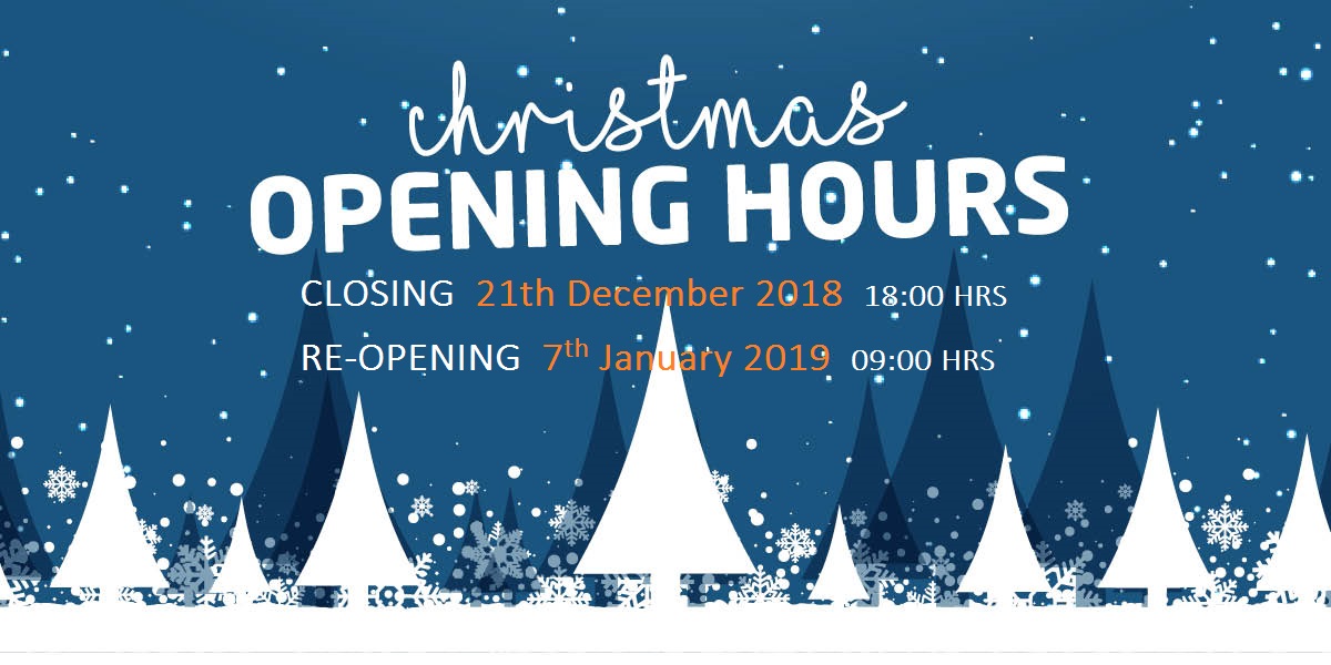 RE-OPENING Monday 7th January 2019 – 09:00 HRS