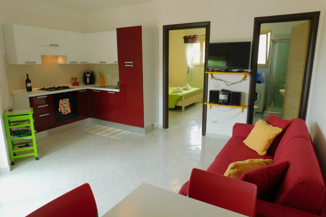 LivingDining – Open plan living area, tailored kitchen, table & 4 chairs & sofa bed.