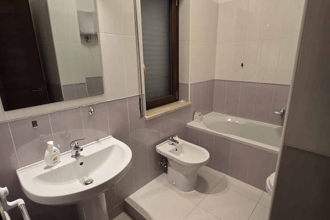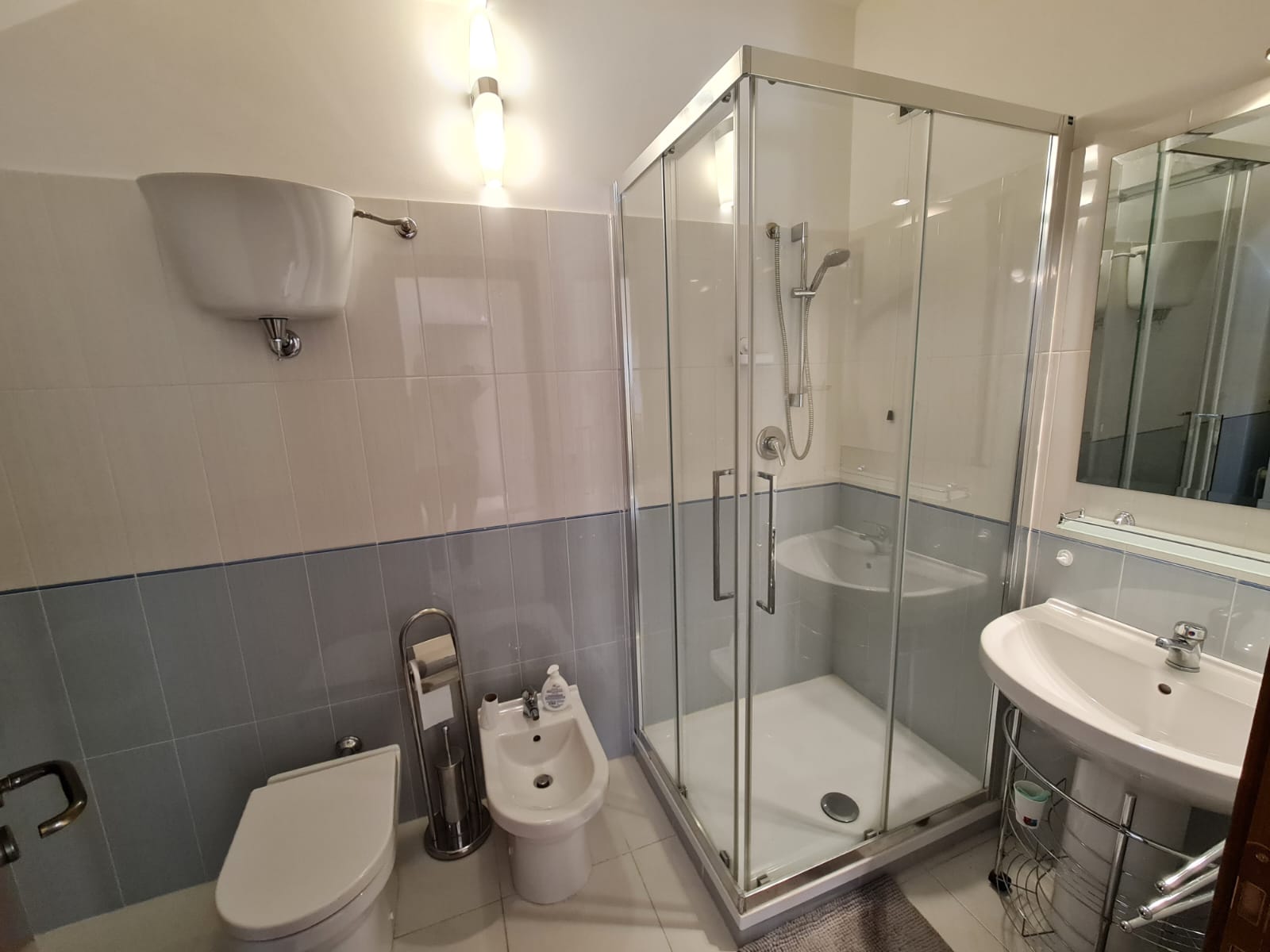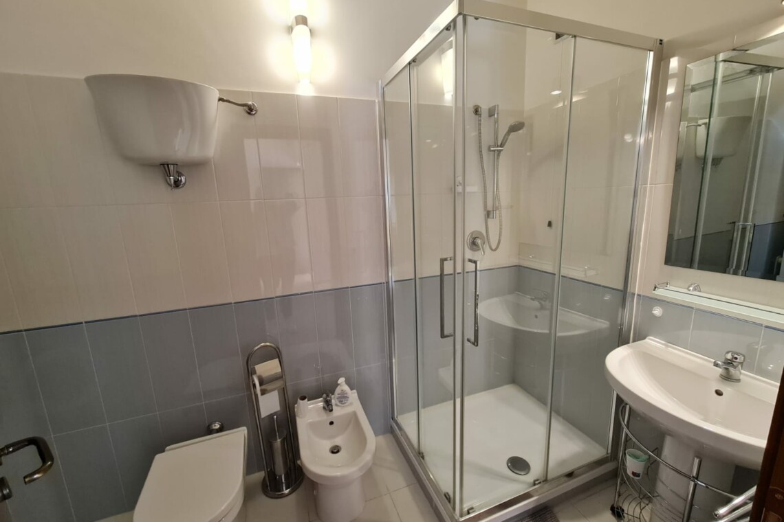 • Family bathroom with washing machine, shower, sink, bidet, toilet