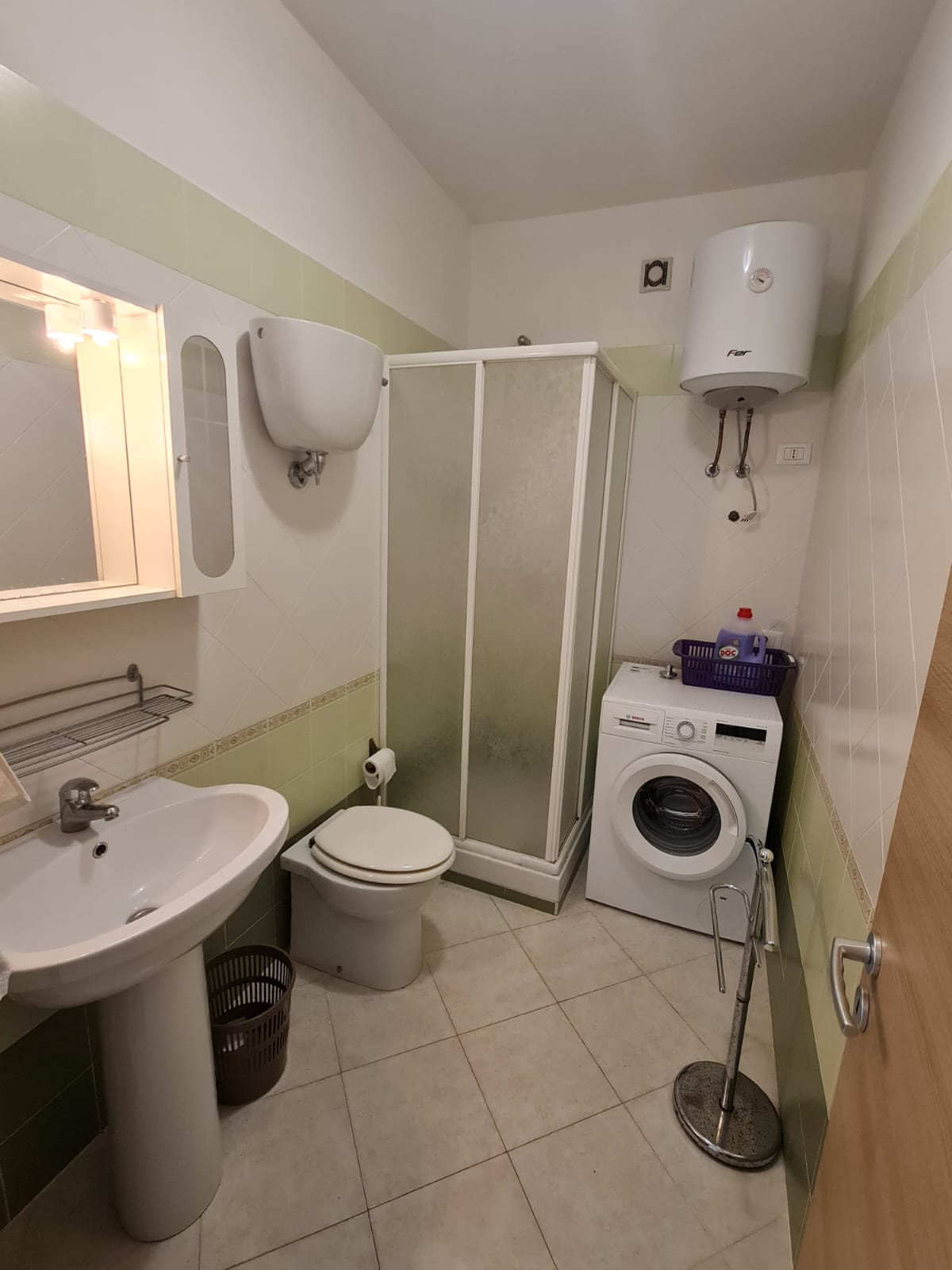 Bathroom – Toilet, sink, shower& washing machine.
