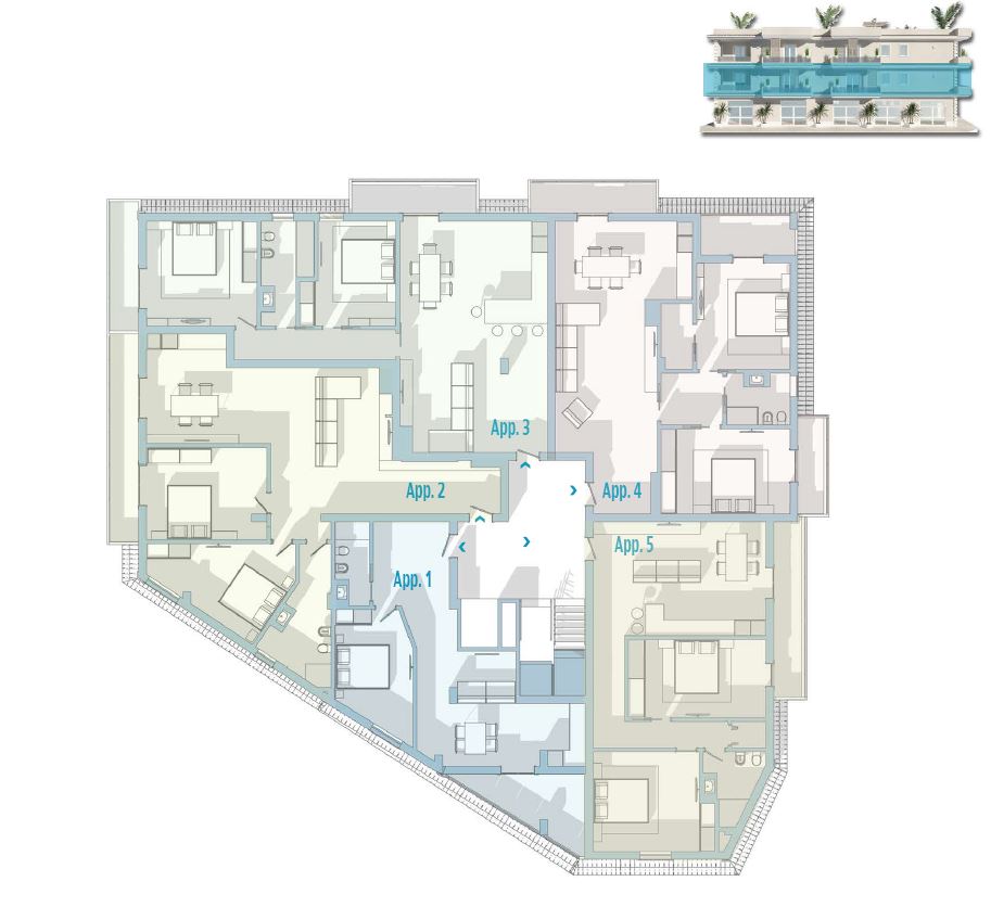 •    Second Floor – 5 Apartments