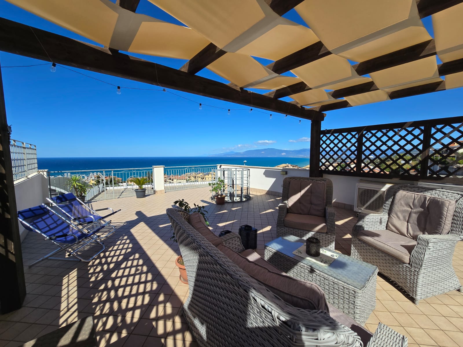 •    First floor Covered terrace + Sea Side Solarium – walls have been capped with travertine marble.