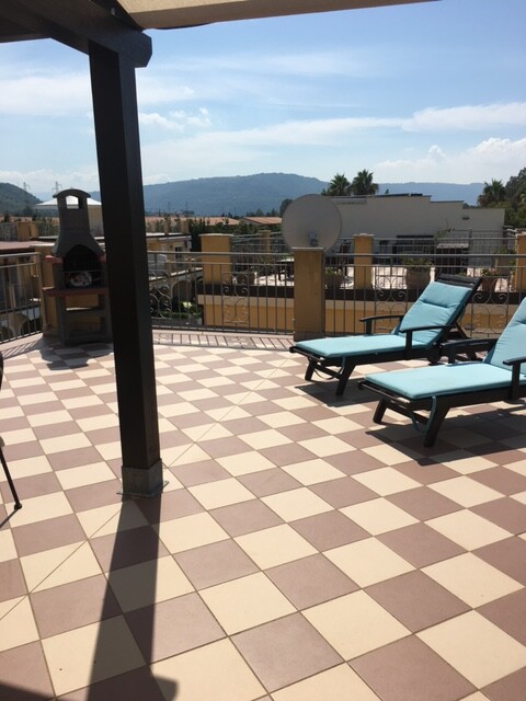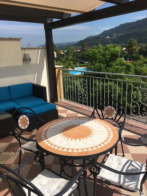 The Calabrian winter is cool and there is moderate rainfall which only means that in Summer, when it is simply Divine, the area still remains beautifully green and rich with flowers. Summer temperatures regularly hit the 30s and the evening sun is simply fantastic up on our roof terrace.