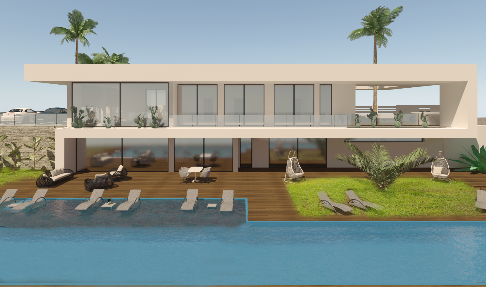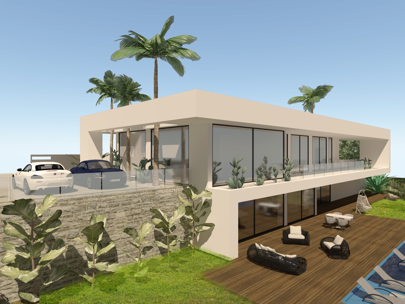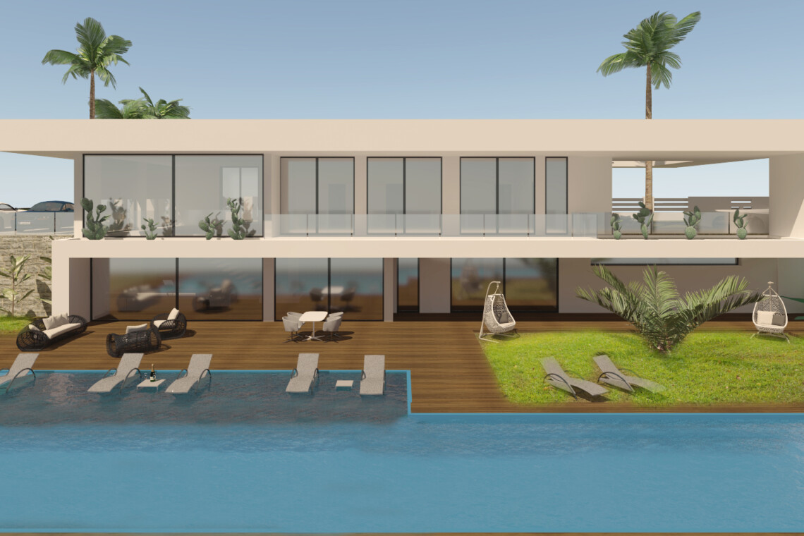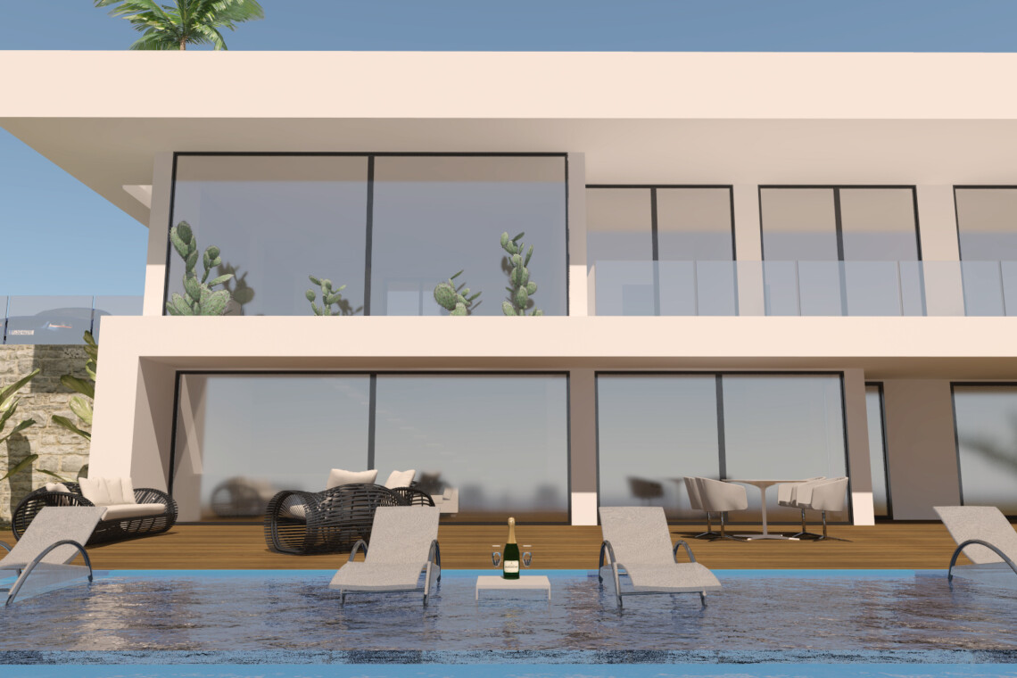 Villa 4 is a 3 bed 2 bath independent modern design villa with  outside terrace and over 120 sqm. of a roof top solarium. There is also some of the best views of the coast you will see.