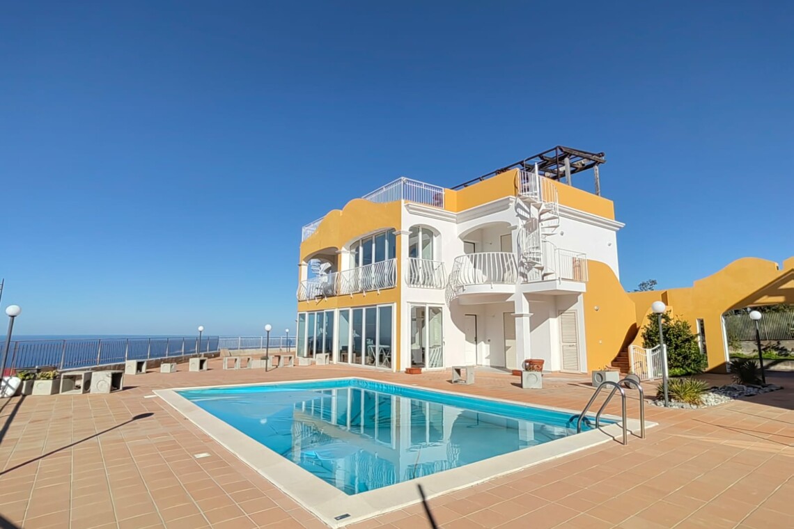 Newly built sea-view properties in Zambrone, Calabria. Each unit has 2 bedrooms and 1 bathroom. Those on the ground floor come with private gardens, while those on the first floor have spacious balconies and terraces. This stunning complex consists of two separate buildings: The first – is a spacious single-level villa featuring a lounge with large windows and a patio overlooking the sea. There is a roof terrace, accessible from an external staircase.